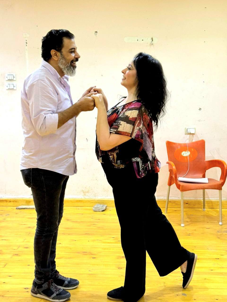 هند عاكف ومحمد يوركا بالبروفات الأخيرة لمسرحية عجب العجاب