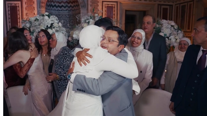 وظهر محمد هنيدي في فيديو لحظة عقد القران متأثرة وبعدها احتضن ابنته.
