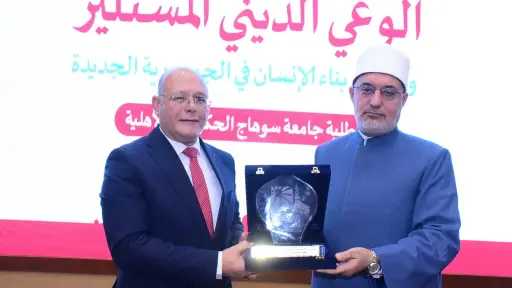 وفي كلمته خلال مراسم التوقيع، أعرب فضيلة مفتي الجمهورية عن تقديره للتعاون مع دار الإفتاء المصرية مع جامعة سوهاج الأهلية، مؤكدًا أن هذا البروتوكول يأتي في إطار حرص دار الإفتاء على توسيع آفاق التعاون مع المؤسسات الأكاديمية والعلمية، بما يسهم في دعم جهود نشر الوعي الديني والفكري الصحيح، وترسيخ المنهج الوسطي القائم على الاعتدال والتسامح، فضلًا عن الإسهام في إعداد كوادر شبابية واعية قادرة على التعامل مع قضايا العصر بروح علمية مستنيرة، وبما يعزز دور الجامعة في خدمة المجتمع وتنمية البيئة المحيطة بها فكريًا وثقافيًا.