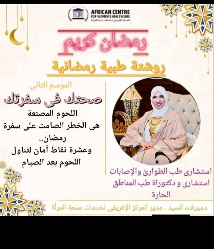 أعلنت *د.ميرفت السيد* مدير المركز الافريقى لخدمات صحة المرأة و استشارى طب الطوارئ والإصابات واستشارى طب المناطق الحارة وأخصائي جودة الرعاية الصحية وأخصائي السلامة والصحة المهنية، أن اللحوم الحمراء الطازة (مثل: البتلو، اللحم البلدي، لحم الضأن الصغير، الكندوز الخالي من الدهون) ليست مجرد “طبق رئيسي”، لكنها من أهم مصادر التغذية العلاجية في رمضان إذا أُحسن اختيارها وطهيها وتناولها باعتدال فهى: